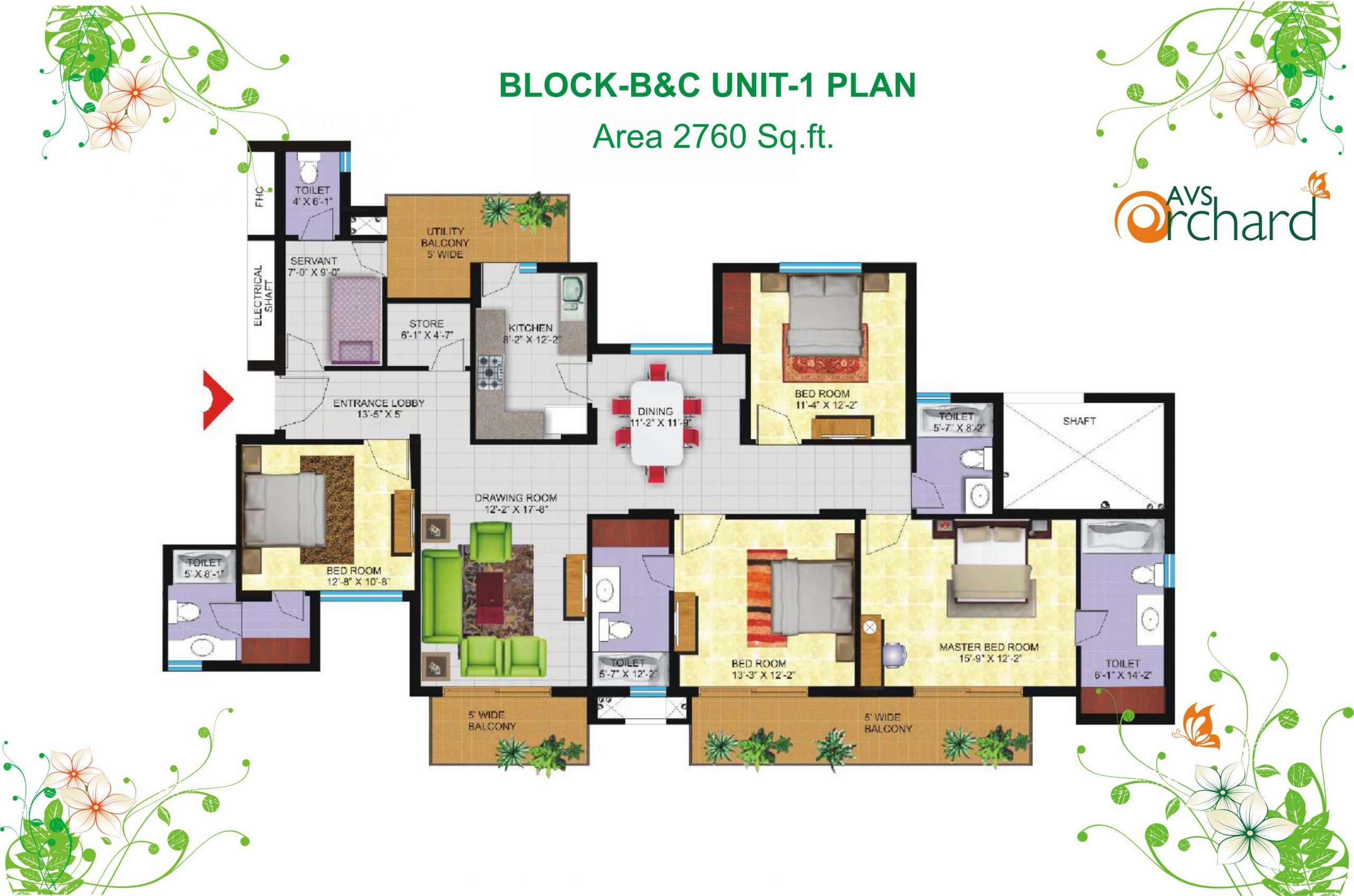 AVS Orchard Floor Plan Floor plans tell you exactly how big or small the rooms or spaces in a house are, and so is the perfect way to get an understanding of the house layout. The units in AVS Orchard come in a choice of 1 type of floor plan as per the 1 configuration. The 3 BHK Flat comes with a multitude of size options such as an 1890 sq. ft super area. These configurations come with well-fitted bathrooms and accessible balconies. The various types of floor plans of different units in AVS Orchard are as follows-