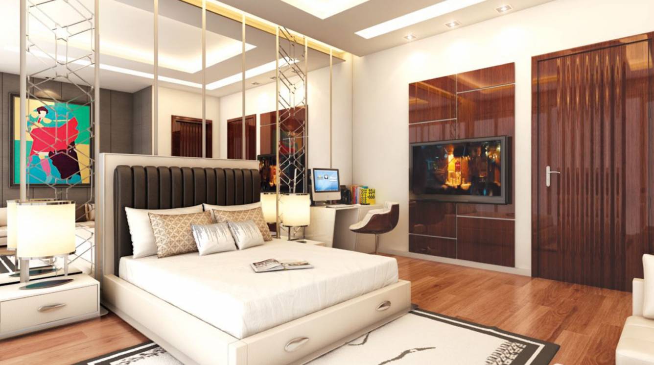 STRUCTURE: RCC structure design for Seismic Zone IV. WALLS Internal walls finished with mixture of Acrylic Emulsion Paint, Texture paints and Wall Papers. FLOORING Mixture of imported marble, vitrified tiles, hardwood flooring and anti-skid tiles for balconies and washrooms. DOORS AND WINDOWS 8 feet high polished doors with frames with elegant design in Teak, Mahogany, imported or equivalent wood with doors and windows in balcony with imported Aluminium and UPVC or equivalent with combination of double and single glazed panels. Open-plan interiors make the most of large living and dining areas extending to kitchen. Note: Main entrance door will be fire resistant. BALCONIES Deck style balconies in all rooms. 1.2 m high-secured balcony railings at higher floors for safety.