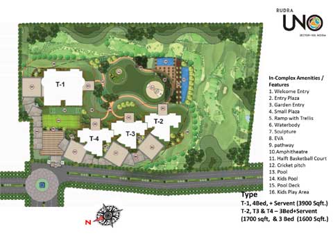 Rudra Uno is premium living destination with an iconic tower.It enjoys a great location in the prime part of Sector 150, Noida. The entrance is a spectacular gate which opens to two different blocks with defined drop off zones are a beautiful sight with canopy trees, underlit sculpture and flowering plant. The tower with a façade of ample glass and jaali have two apartments per floor offering unobstructed view of the golf course and enjoy plenty of sunlight and air. The outdoor offer large lawns suitable for outdoor movie screenings , sunken courts which allow users t interact and engage in the aromatic green terraces of the court. The lush green parks with wide street walkways, verandas and cabanas are designed to reconnect with nature within the premises. And to top it all there are two terrace pools, each for kids and adults, overlooking the golf spread. Synonymous with the highest standards in the real estate, Rudra Uno promises to provide best-in-class amenities to its residents. The property spreading in 4.5 acres, comprises of three towers along with one signature tower with high end specifications.